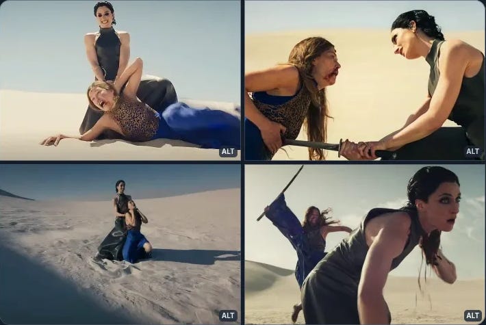 The 21st century entertainment landscape is filled with dystopian fantasies that inure people to violence, brutality, and trauma. In the parlance of our time, any one of these can be appended with the postfix “-porn” to efficiently communicate the ubiquity and banality of these kinds of explicit visuals within the culture. Dystopian movies and TV shows have transcended mere entertainment and become cultural shorthand. We refer to real life events in the frame of reference of The Hunger Games or Squid Games or Mad Max or The Handmaid’s Tale. Reality has become Black Mirror. Dystopia’s vernacular of dehumanization, desensitization, and cruelty, especially towards women, seeps into everything. From comedy (the jarringly gratuitous gun violence ostensibly played for laughs in The Out-Laws), to fantasy (the pornographically lurid murder montage of one woman stabbing, choking, slicing the throat of another over and over in Wheel of Time)—